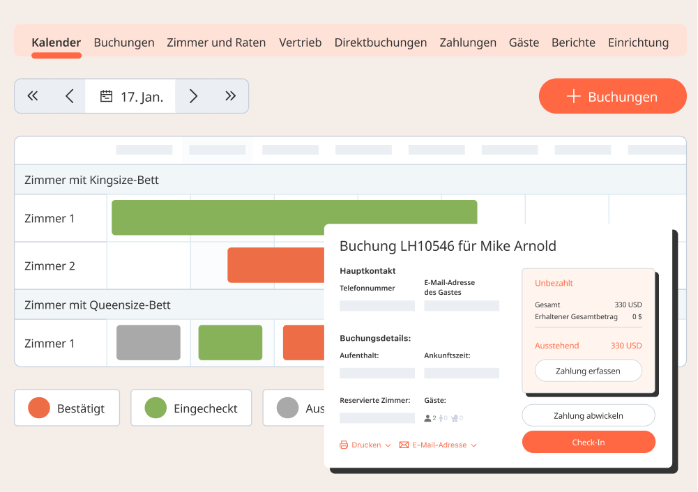 Verwalten Sie alle Ihre Buchungsportale (z. B. Booking.com) und Ihren Bestand in einem System.