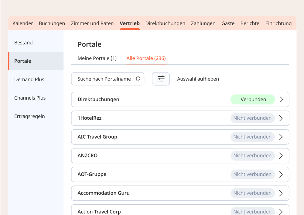 Verbinden Sie sich mit einem beliebigen Portal aus unserer Liste von über 450 Buchungskanälen, um Ihre Belegung zu maximieren.