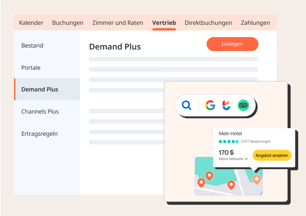 Verbinden Sie sich mit den richtigen Gästen über die wichtigsten Portale, Metasuchseiten und Ihre Website, um Ihre Belegung zu maximieren.