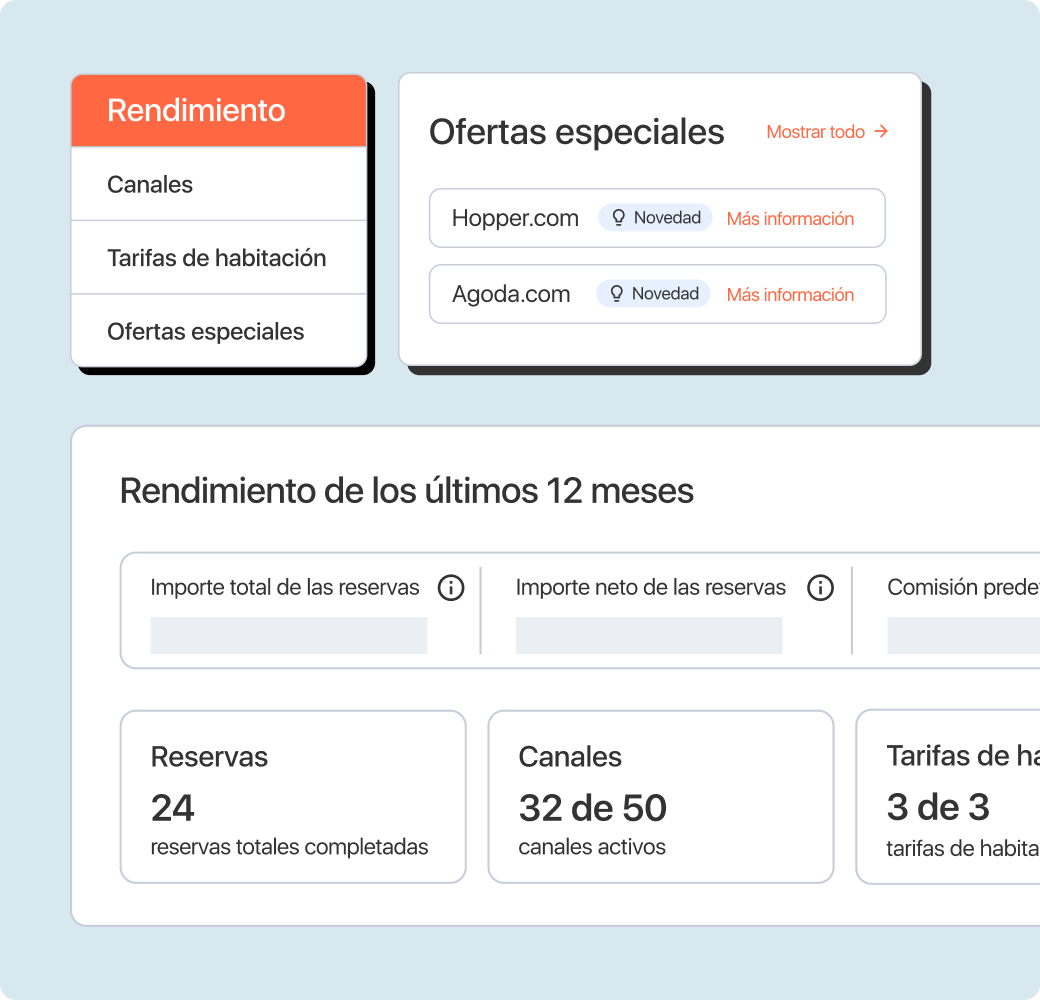 Gestiona todo desde un único panel de control centralizado que incluye tus canales activos, tarifas de habitación y reservas en tiempo real.