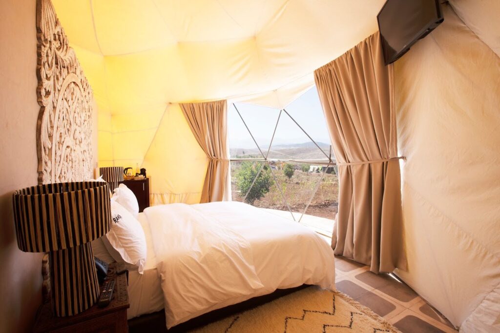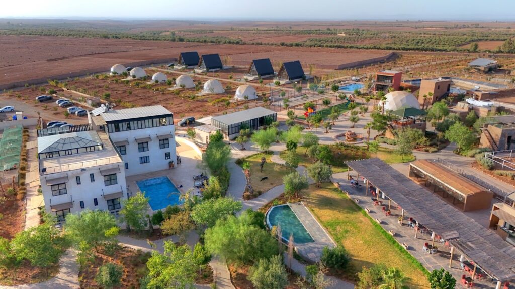 Facing the majestic High Atlas mountains and spread over six hectares, The Ranch Resort offers a unique experience in nature combining high-end glamping, atypical accommodation, and a lush animal park.