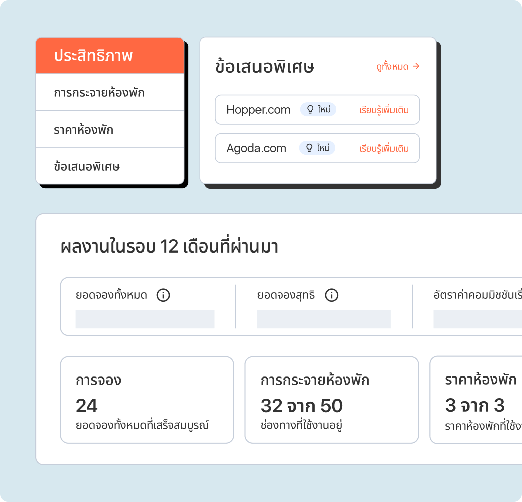 ควบคุมได้ด้วยแดชบอร์ดแบบรวมศูนย์ ซึ่งรวมภาพช่องทาง ราคาห้อง และผลการจองห้องพักแบบสดๆ